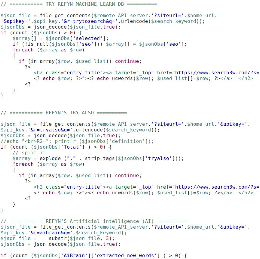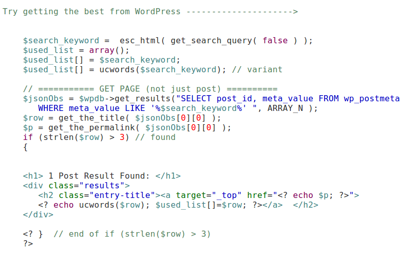 The following are snapshots of a reconstructed search.php file. For full file click here >>.